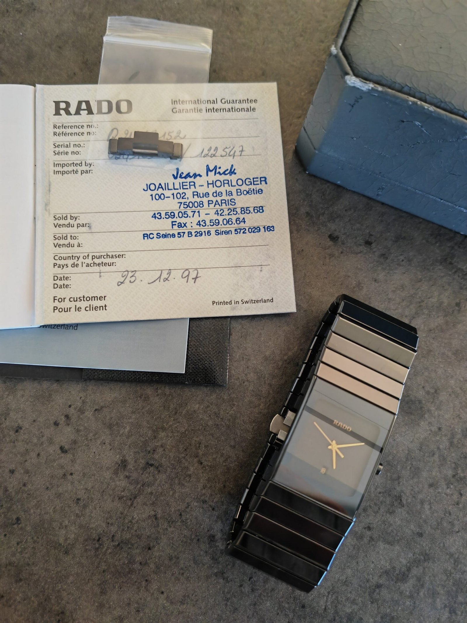 Avec ses documents et ecrin rado